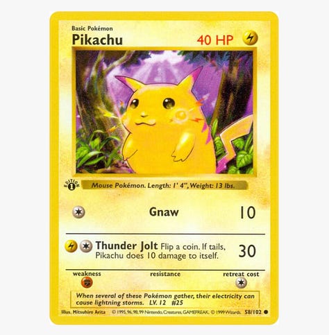 Semantics aside, vintage -anything- is cool. I myself am a sucker for vintage clothes, old/limited pressings of vinyl, and of course, vintage Pokemon Cards. Vintage things quite literally have years of history, aesthetic designs specific to its time, and sentimentality to the people who have owned them over time. For example, vintage clothes develop a patina or were made with a specific cut, whereas vintage Pokemon cards were worn down after being played in decks, traded amongst each other, and stored in ways we wouldn’t do so today.